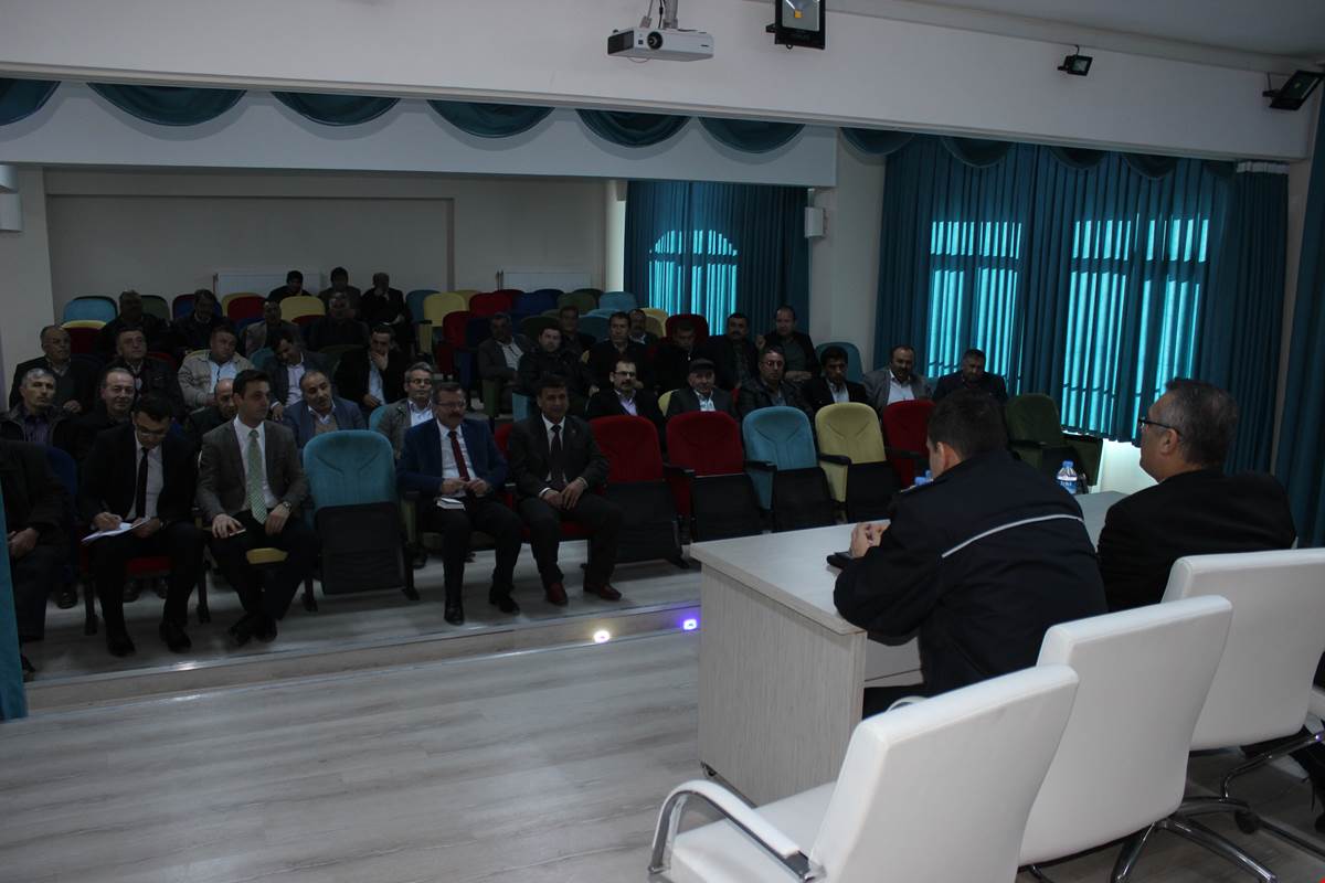 İlçemiz Halk Eğitim Merkezi Konferans Salonunda Kaymakamımız Dr.Mehmet BOZTEPE başkanlığında İlçe Jandarma Komutanı,İlçe Emniyet Müdürü, İlçe Yazı İşleri Müdürü, İlçe Özel İdare Müdürü, Karaadilli Belediye Başkanı, Karaadilli Mahalle Muhtarları ve Köy muhtarlarının katılımı ile güvenlik toplantısı ve halk toplantısı gerçekleştirildi. Toplantıda gerek Muhtarlarca gerekse ilgili kolluk birimleri tarafından ilçemizin huzur ve güvenliği, belde ve köylerimizin genel sorun ve problemleri noktasında tespit edilen sorunlar ve çözüm yolları hakkında değerlendirmeler yapıldı.